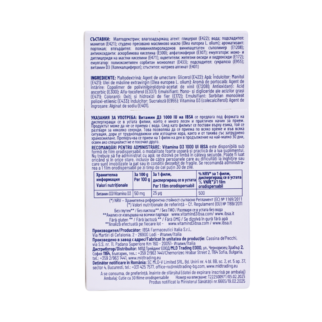Forma orodispersabilă FilmTec® face ca vitamina D3 IBSA să fie extrem de ușor de administrat, deoarece nu necesită apă, se dizolvă rapid pe limbă și este potrivită și pentru cei care au dificultăți la înghițire.